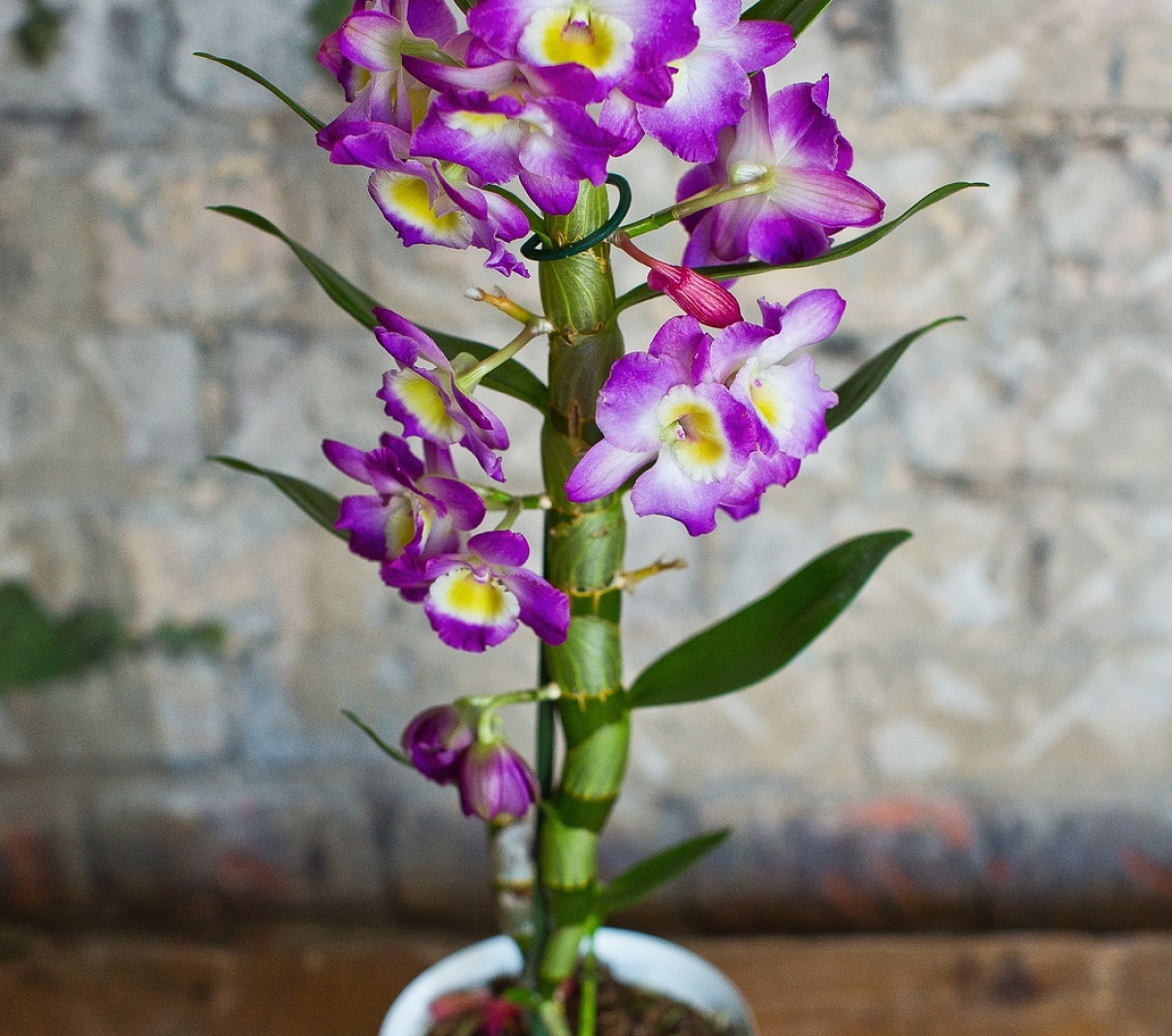 Трости Dendrobium различаются от вида к виду, но некоторые могут вырасти очень высокими. Поскольку эти эпифиты привыкли расти вместе с корнями в довольно стесненных условиях (например, в трещинах в камнях), им нравится небольшой горшок.Эти два факта могут создать небольшую проблему для некоторых растений Dendrobium, поскольку они становятся несколько тяжелыми. Пластиковые горшки, как правило, не обладают таким весом, чтобы выдержать высокие экземпляры, хотя их можно поместить внутрь сеялки, чтобы обеспечить им дополнительную поддержку. Более крупные ростки могут потребовать некоторой подпорки, особенно когда растение недавно пересажено — идеально подходят бамбуковые колья, в то время как более мелкие ростки можно легко связать с другими стеблями, слегка перевязав веревкой.