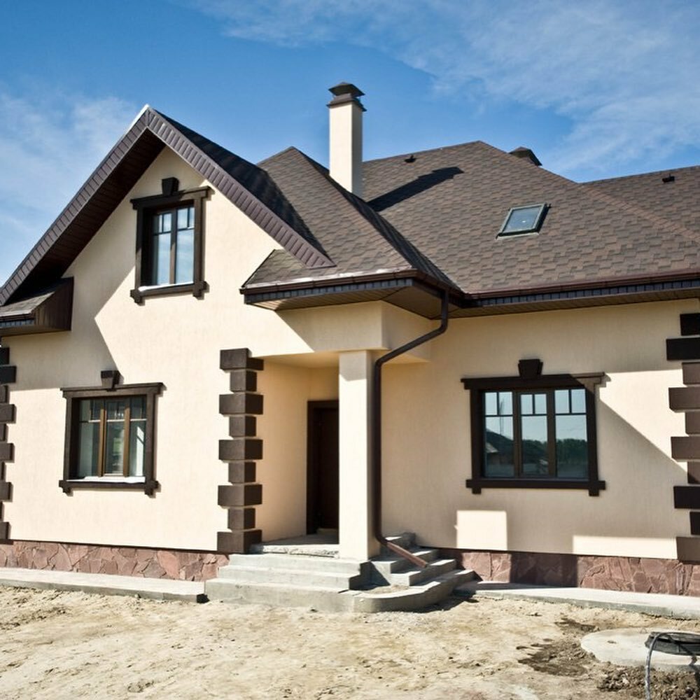 Если по плану вы должны покрасить внешний вид дома, я могу предложить вам сначала выбрать и установить крышу.Легче подобрать краску под цвет крыши, чем наоборот.