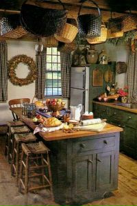 На кухнях в деревенском стиле очень часто используются островные столы с рабочей зоной