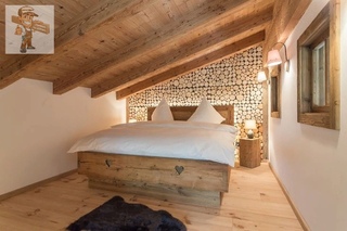 Спальня с мансардной крышей в деревянном доме может так же быть отделена деревом, например, вагонкой. Как известно, дерево — экологически чистый природный продукт. С ним стены будут всегда «дышать». Такая спальня будет теплой, уютной и одновременно стильной. За отделку деревом можно абсолютно не переживать. Этот материал прослужит долгие годы, не нужно бояться, что он начнет гнить.