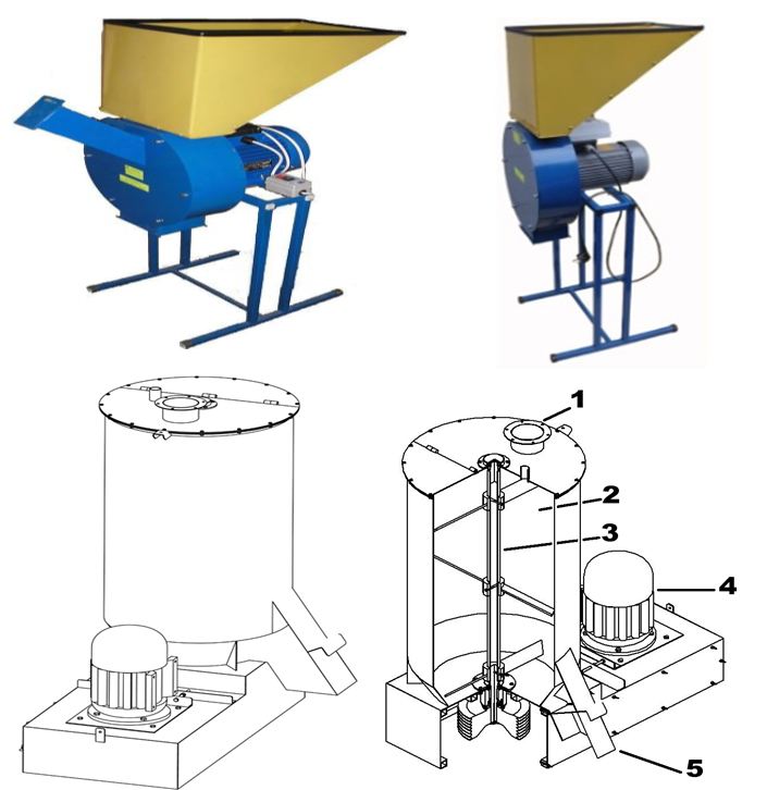 - Молотковая машина — в такой конструкции элементы для измельчения должны монтироваться на ротор, который будет вращаться в самом приёмном бункере.