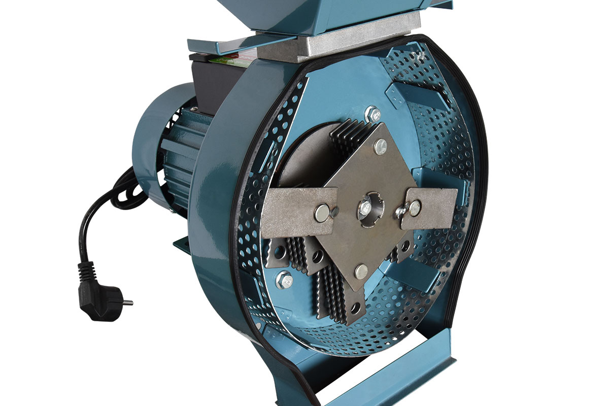 Подобный агрегат работает достаточно быстро и измельчает зерно в мелкие фракции, которые можно подмешивать в еду для мелких питомцев, а также для перепелов и других видов домашней птицы;