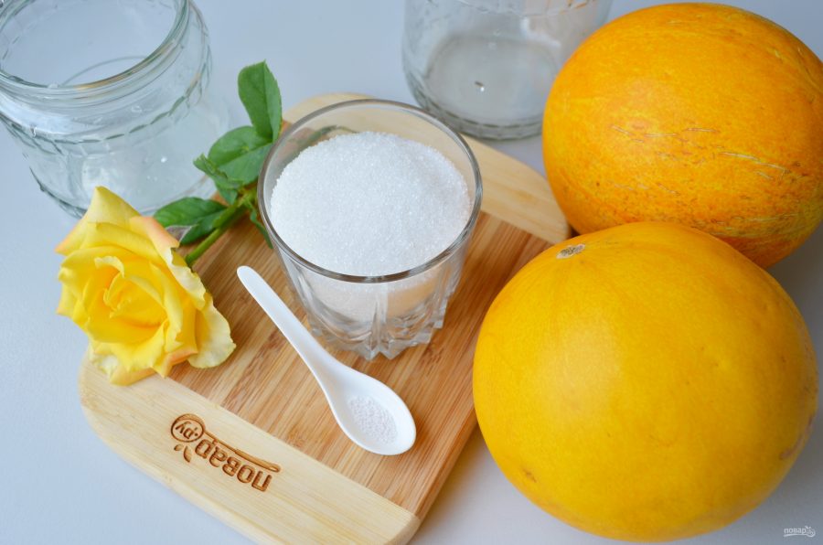 Дыня 1 шт. Сахар 800 гр. Вода 400 мл. Лимонная кислота 1 щепотка