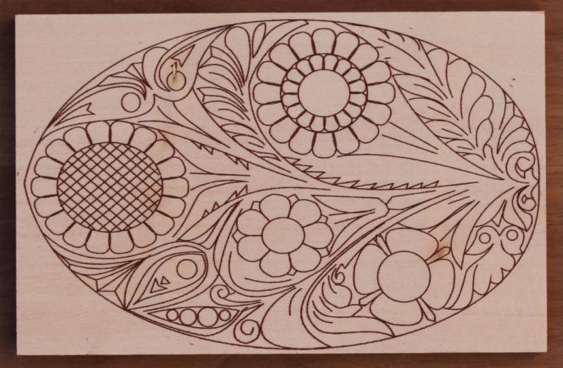 Как подготовить рисунок к работе: я обычно распечатываю узор на лазерном принтере, а затем переношу на деревянную поверхность методом декупажа, после чего уже работаю по орнаменту инструментом.