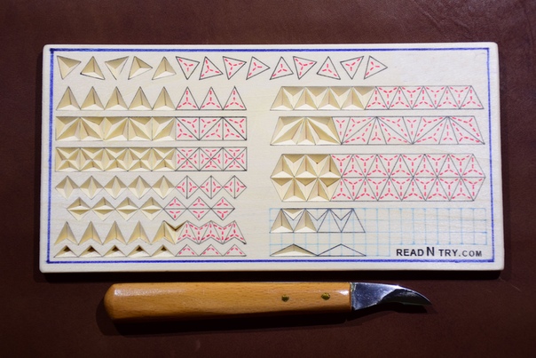 Теперь можно приступать к резьбе – начнём мы с окантовки первой фигуры, которую будем резать. Условно принято называть такой вырезанный треугольничек «сколышком».