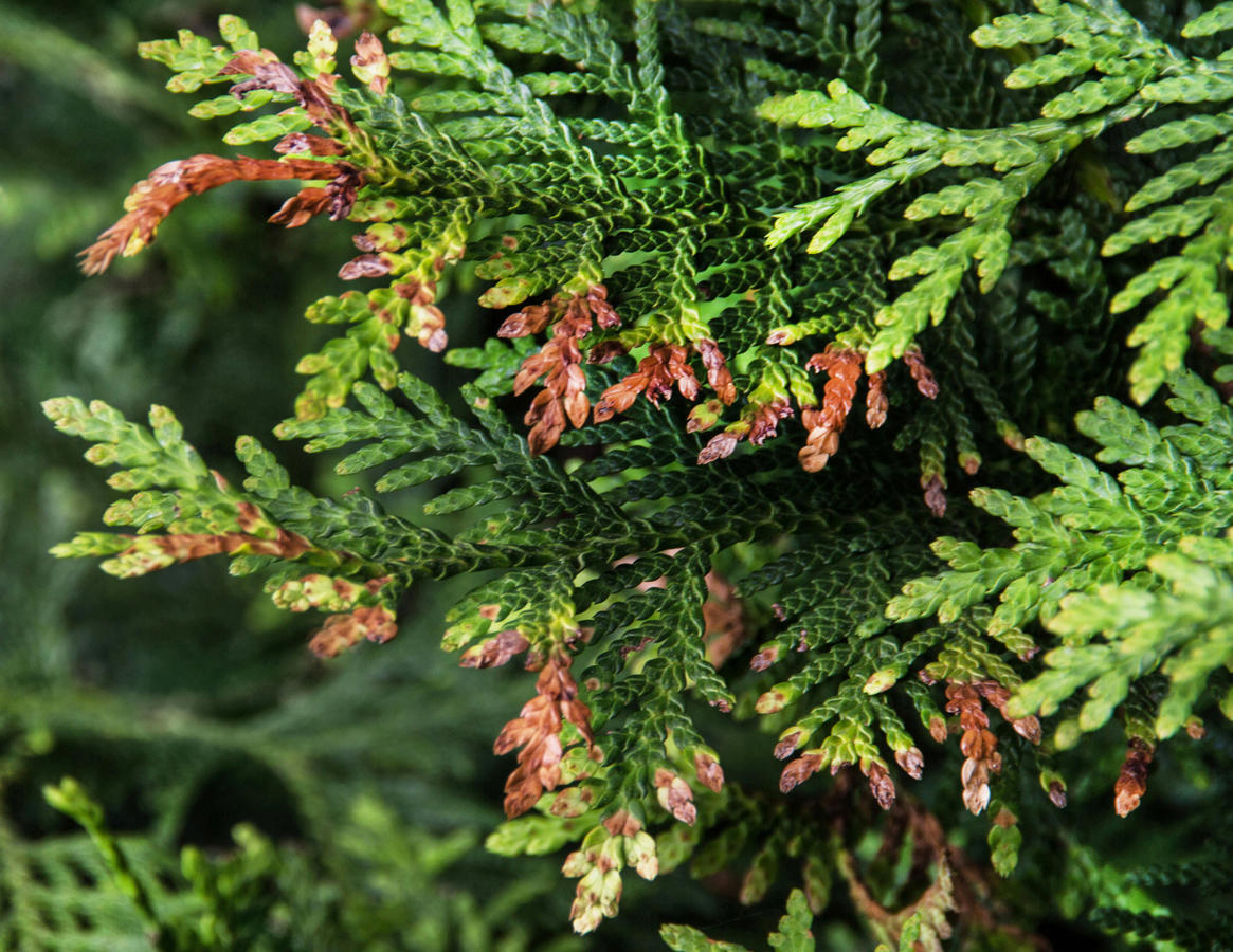 Однако не всегда пожелтение туи вызвано столь радужными причинами, иногда растение просто плохо себя чувствует. Если вы замечаете весной или летом обширное побурение, желтизну хвои и отмирание зелени на обширных участках кроны – тогда нужно срочно принимать меры. Но что деревцу не нравится?