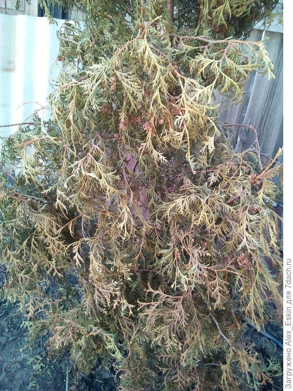 Загар хвоя появляется в результате недостатка влаги в переходный зимне-весенний период. Очень яркое весеннее солнце способно просто обжечь беззащитную тую почти до самого ствола.Поэтому в конце зимы — начале весны (февраль-март) эфедру следует притенять, используя, например, простой белый материал (лист), маскировочную сетку или лутрасил (накинуть прямо на растение и не снимать до тех пор, пока Апрель).