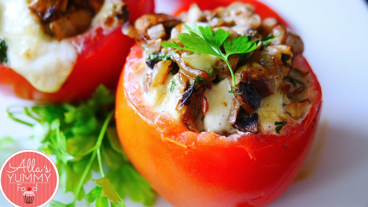 Помідори фаршировані фаршем і грибами, з сиром і запечені в духовці