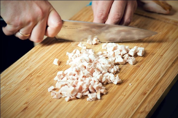 - 100 г варёного куриного филе;