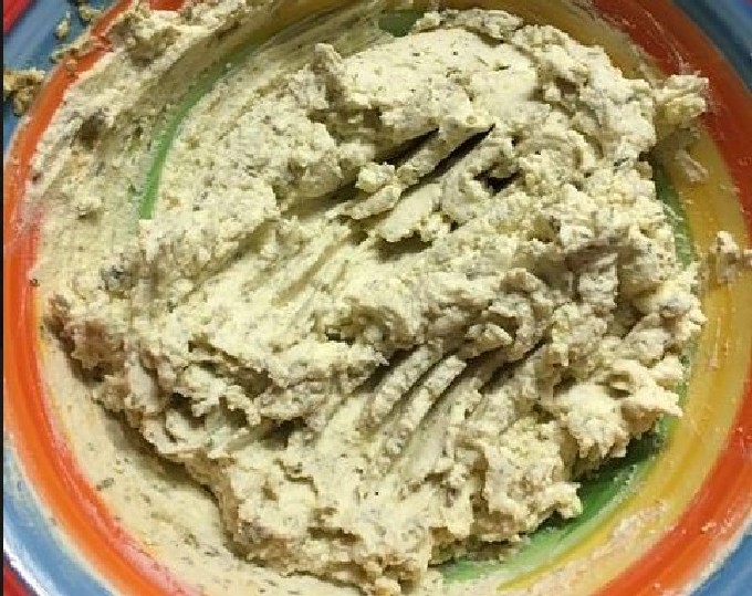 Смешайте тёртый сыр, масло комнатной температуры, измельчённый чеснок, рубленую петрушку и чёрный перец.