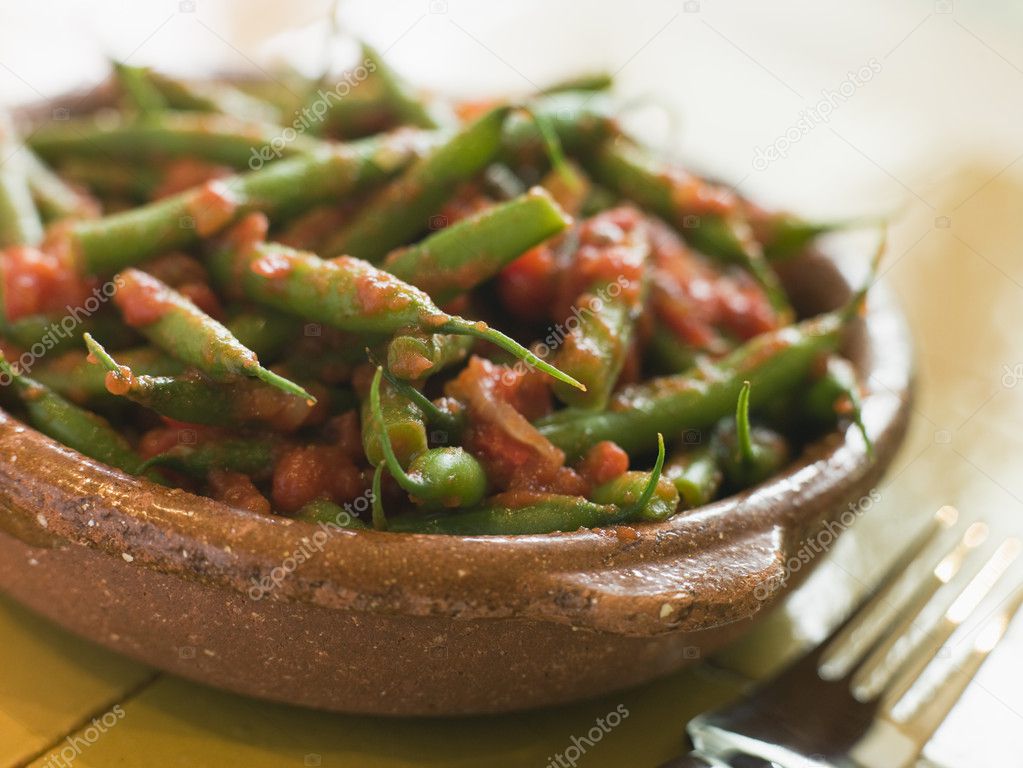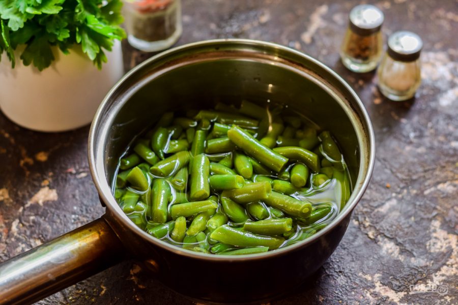 Зеленая фасоль в соленой кастрюле