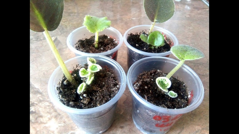 Когда на листочке появятся корешки длиной 4−7 см, его укореняют. Сверху нужно накрыть банкой или плёнкой от испарения и дожидаться результатов. Если всё прошло гладко, появившиеся растеньица по мере их роста пересаживают в отдельные горшочки. Если будет оказан хороший уход, то фиалки зацветут уже через год.
