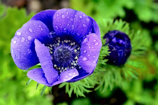 Необычный, редко встречающийся в природе насыщенный синий цвет одного из гибридных сортов анемоны корончатой: анемона де Каен