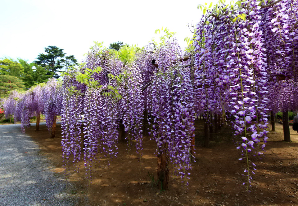 Из-за близко расположенных друг к другу цветов и соцветий на лозе создается впечатление сплошного цветущего и ароматного полога. Бутоны раскрываются от основания цветоноса, они окрашены в светло-фиолетовый или голубой цвет. Период цветения наступает в мае.