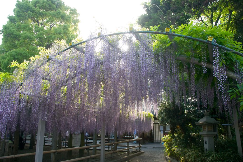 Глициния японская (обильноцветущая) обладает более короткими побегами, по сравнению с китайской. Ее максимальная высота составляет 10 м. При этом у обильноцветущей лианы крупнее листья (до 40 см) и цветочные гроздья (50 см). Зацветание вида происходит медленнее, цветки распускаются постепенно, начиная от основания. Обильноцветущая или, как ее еще называют, многоцветковая глициния по морозоустойчивости не уступает китайской, а ее декоративные качества оцениваются выше.