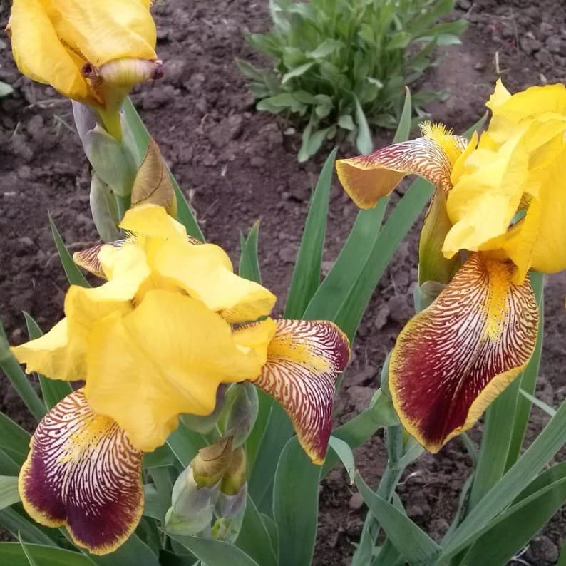 Желтая и коричневая Ирисовая ирисовая желтая в регенерации.
