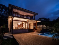 Постройка на этом фото выглядит, как летняя вилла на берегу океана. Она сочетает в себе черты жилого дома и уютного клуба: