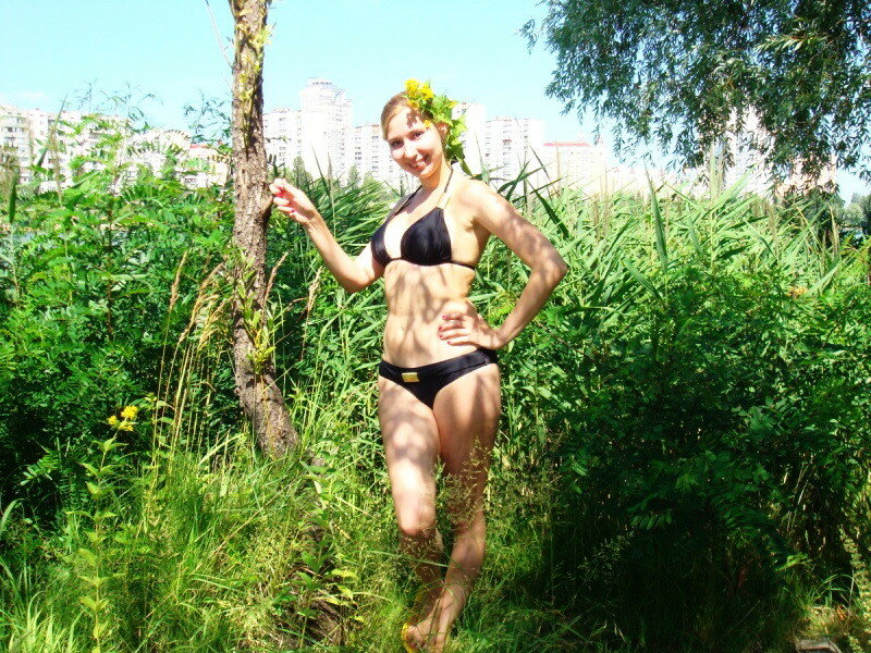 Совсем молодая жена с удовольствием фотографируется голенькой на даче.