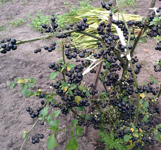 Созревание ягод паслена происходит не одновременно. О готовности ягоды говорит насыщенность черной окраски кожуры. Перезрелые ягоды опадают на землю, и семена дают прекрасные всходы даже после перенесенных зимних переохлаждений.