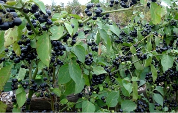 Глянцевый блеск и лоск паслена свидетельствует о его превосходной спелости. Последний урожай санберри обязательно собирают уже с выкопанных и подвешенных кустов. Таким образом достигается полноценное вызревание урожая.