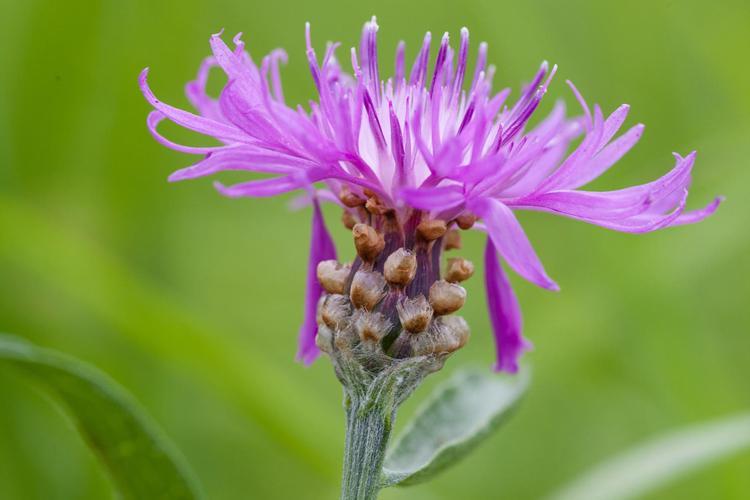Upd. 2020.01 Цветок василька лугового, как и у всех сложноцветных, на самом деле состоит из множества отдельных цветков, собранных в одной корзинке и охваченных обёрткой. Цветёт в июне-сентябре.