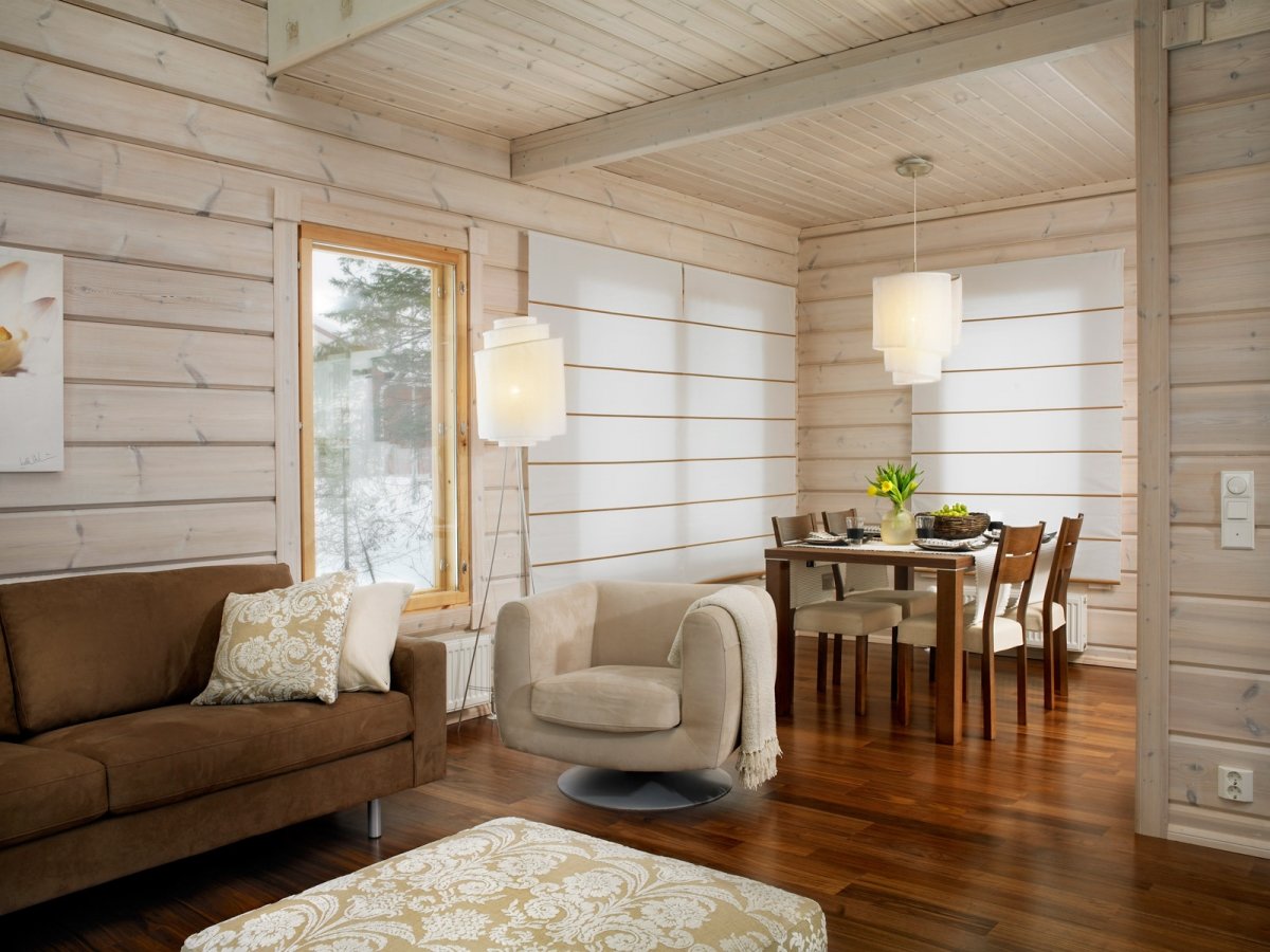Если дача сделана из бруса или бревна, то в ней стеновой отделкой можно и пренебречь. Эти материалы выглядят довольно привлекательно, и их необязательно дополнять иной облицовкой.