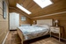 Потолок под крышей будет выглядеть интереснее, если дополнить его деревянными балками. Все древесные основания стоит выкрасить в понравившийся цвет, а на пол положить дорогую светлую плитку.