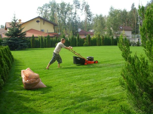 Да и наступать вы будете на уже скошенную траву, двигая перед собой газонокосилку, так что никакого вреда молодому газону это не причинит.
