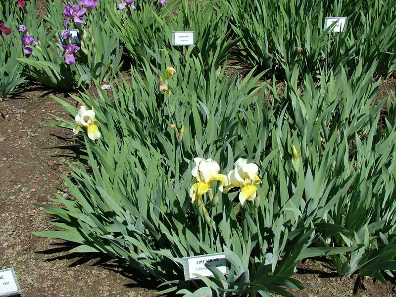 - «Edith Wolford» имеет канареечно-желтые стандарты и сине-фиолетовый водопад на стеблях высотой 40 дюймов.