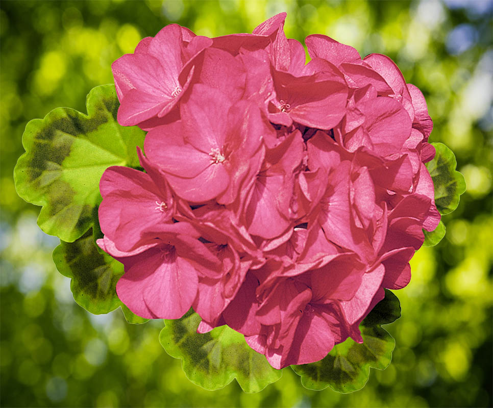 - Античный розовый зональный гибрид образуют очень широкие зонтики цветков. Их очень яркий розовый цвет смягчается оттенком белого.