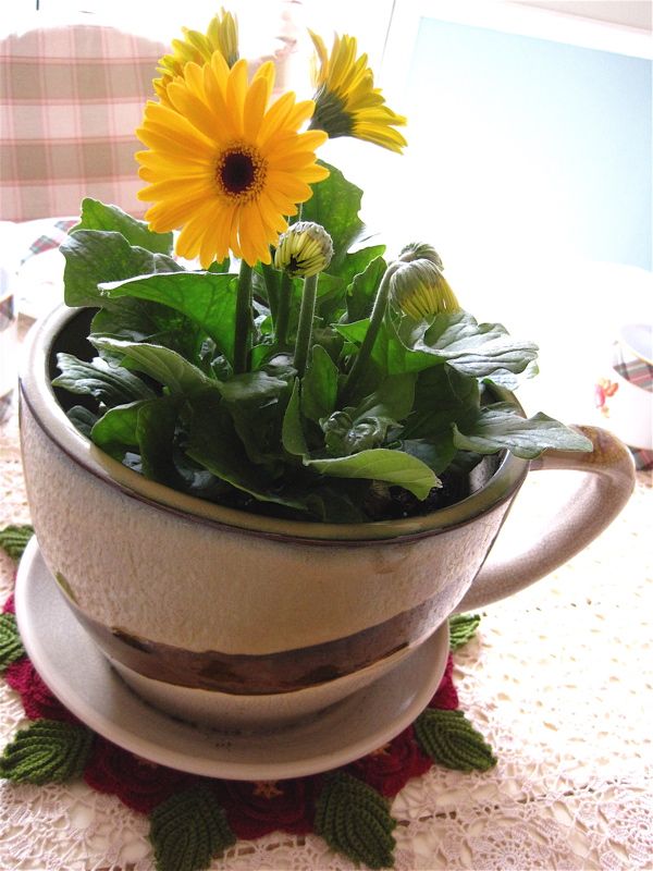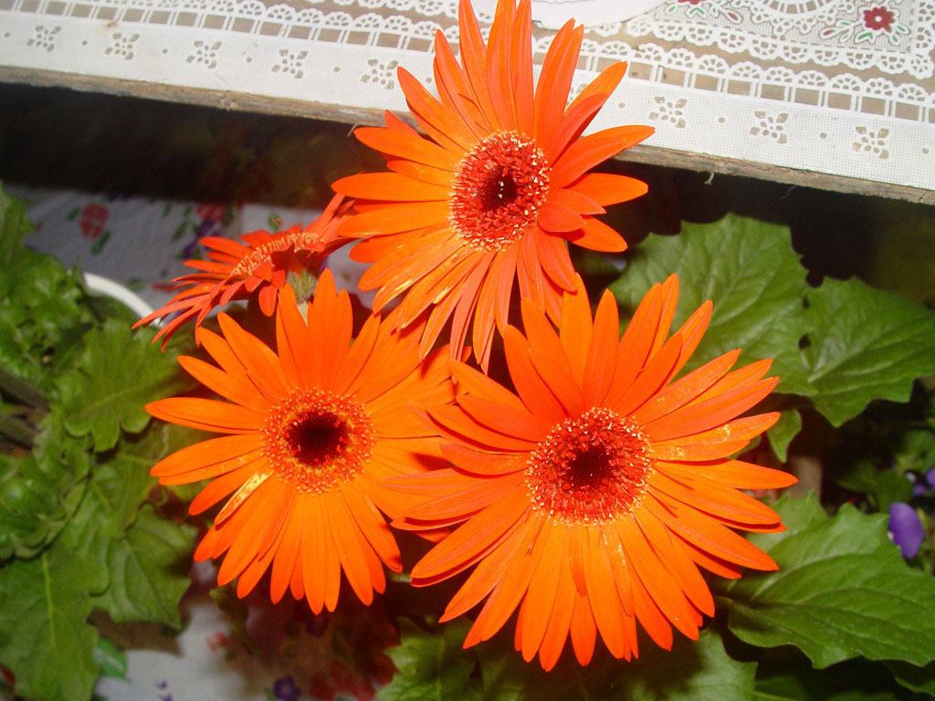 Цветет он довольно долго. Гербера приятна тем, что ее в принципе легко содержать, она не боится сквозняка, ее можно выносить на балкон или лоджию, а летом высаживать на клумбу. Простые герберы очень похожи на ромашку, а махровые можно перепутать с астрой.