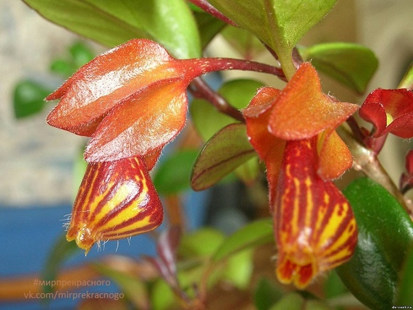 Восковидные цветки трубчатой формы длиной около 5 см со сросшимися в кармановдный вздутый венчик лепестками. Венчик окрашен в розовый, оранжевый, красный или темно-фиолетовый цвета. Цветет растение нематантус обильно и долго – с весны до осени. В культуре растение гипоцирта выращивается как ампельное – в кашпо и подвесных корзинах. Уход за гипоциртой в домашних условиях – тема нашей статьи.