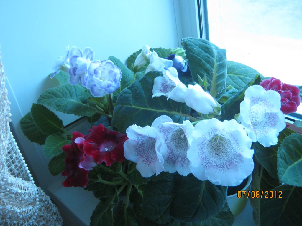 Глоксиния, полученная из семян, зацветает через 6-7 месяцев. В этом году мои семена все проросли. Надеюсь, что теперь я уже справлюсь с ними. Желаю вам удачи! А с меня — фотографии цветущих глоксиний.