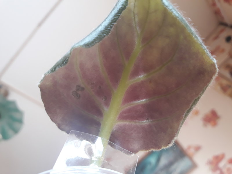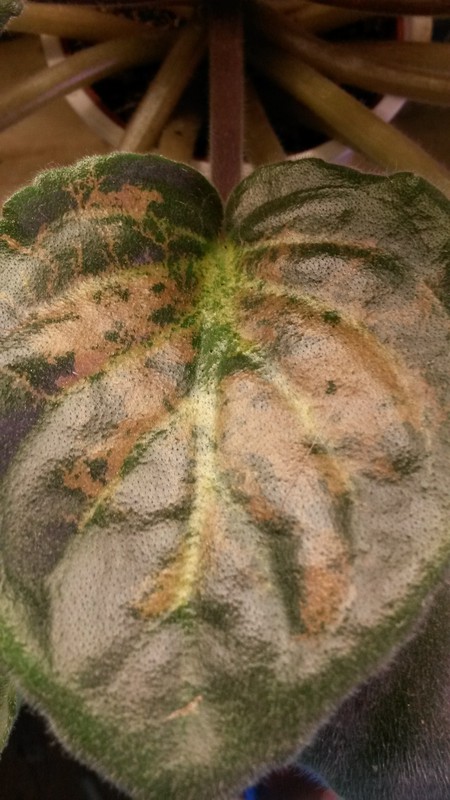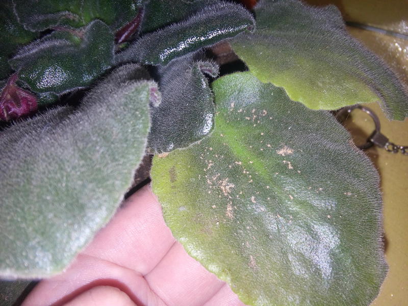 Если при внимательном осмотре сенполии на верхних ярусах зелени замечены темные пятна, то, скорее всего, причина не в физиологическом старении растения.