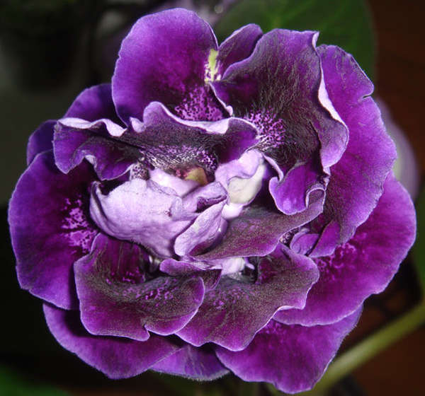 Край цветочка украшен каймой, пышной оборкой, на поверхности лепестков — россыпь светлых или тёмных крапинок.