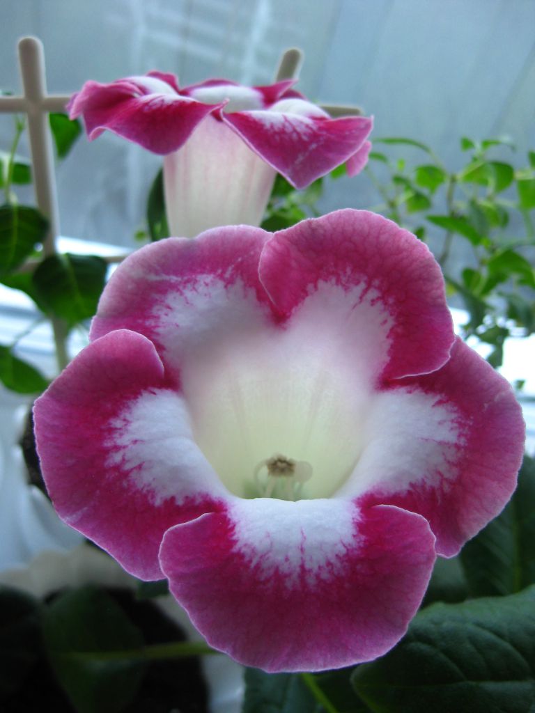 У некоторых сортов глоксиний цветки имеют форму не привычного колокольчика, а тидеи, то есть башмачка, чаще встречающегося у других растений, относящихся к геснериевым.
