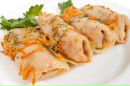 - Боковые края подгибаем, а сам лист сворачиваем рулетом со стороны начинки. Таким же образом формируем остальные голубцы.