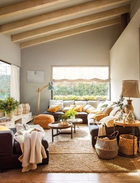 Они актуальны для интерьера, оформленного в любом стиле: и в скандинавском, и в современном, и в деревенском. Но обязательно учитывайте архитектурные особенности здания. Например, в гостиной со вторым светом в деревянном доме высота потолка часто составляет более 5 метров, так что и балки должны быть массивные.