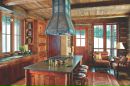 Источник: RedfinИзюминкой этой гостиной в загородном стиле является большой каменный камин.Эта серая мозаика из камня выделяется на фоне деревянного потолка, стен и паркета. Этим деревянным элементам также контрастируют темно-коричневые кожаные кресла у камина.