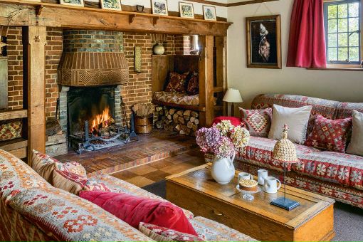- Гостиная в деревне располагает к долгим душевным беседам перед камином либо к рукоделию женской половины дома.