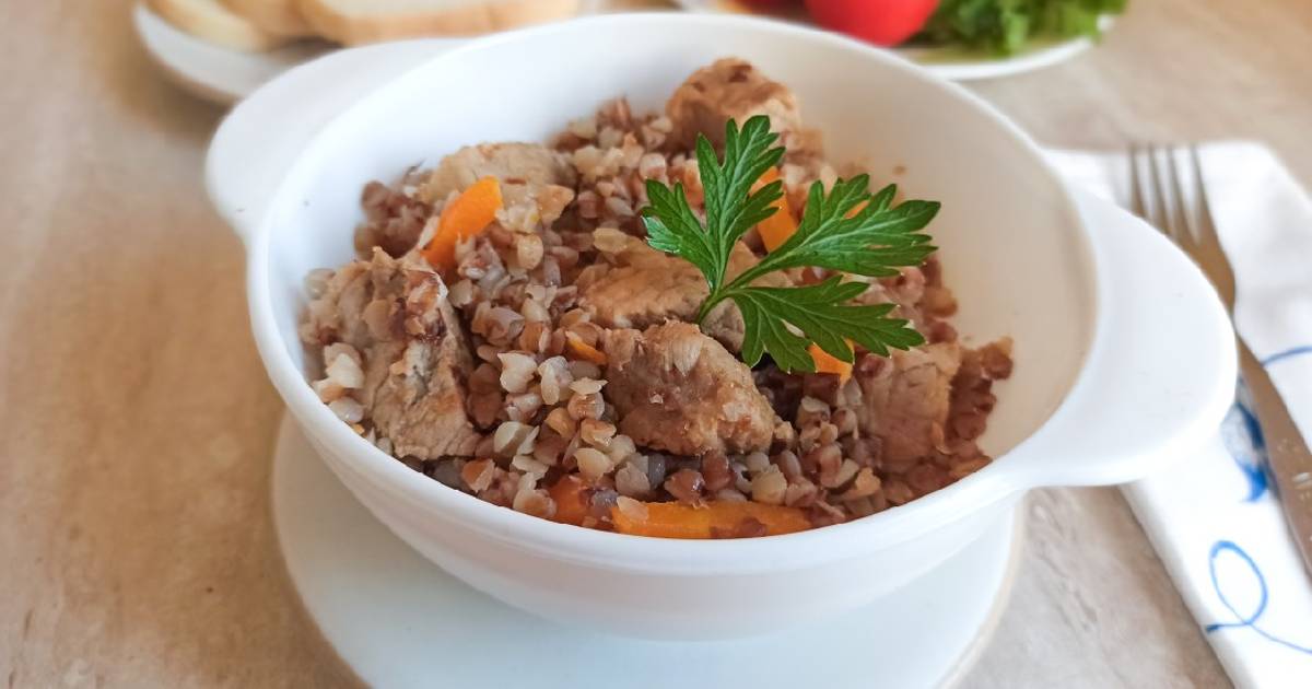 Свинина с гречкой в мультиварке. Рецепты простые, вкусные с томатной пастой, подливкой, сметаной. Фото