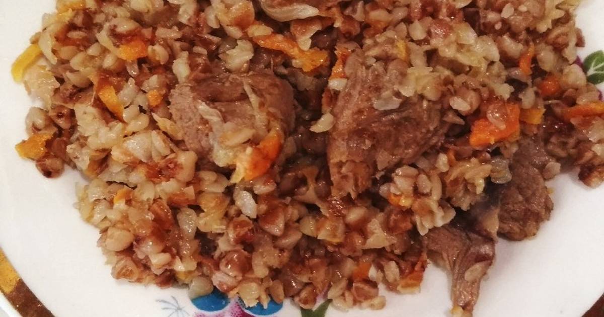 Блюдо готовят из гречневой крупы, свинины, моркови, репчатого лука и специй.