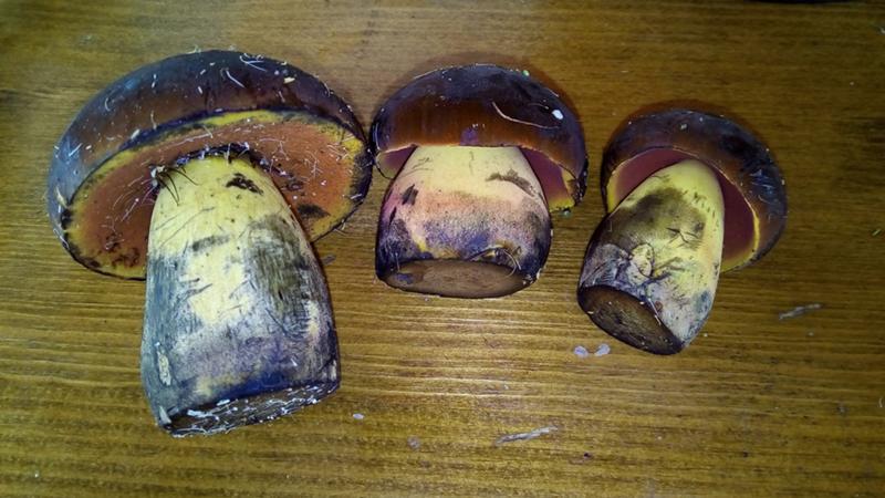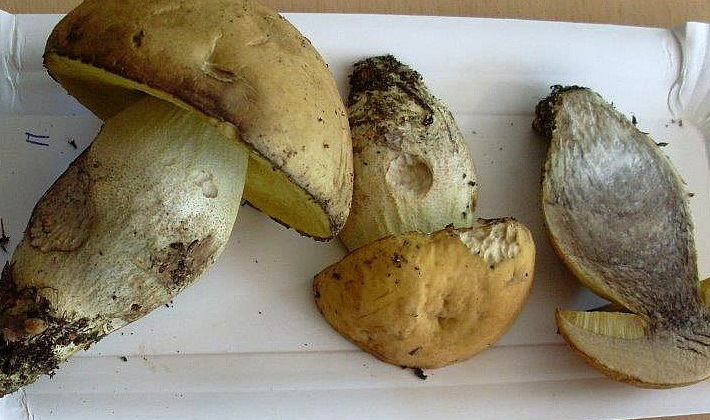 Например, польский гриб — довольно ценный экземпляр. Его шляпка снаружи тёмно-коричневая или бурая, а внутри – пористая и жёлтая. Шляпка этого плодового тела посинеет при нажатии. Но у него нет восприимчивости к накапливанию различного рода токсинов и вредных веществ, поэтому его можно смело употреблять в пищу.