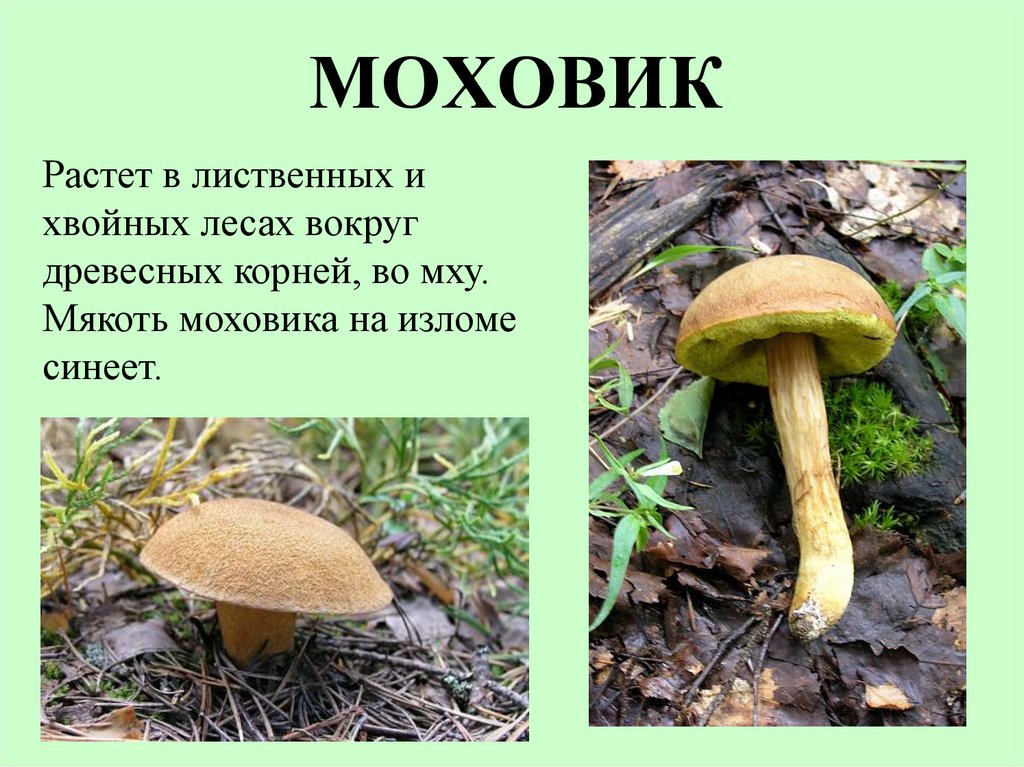 Грибы моховики можно встретить в хвойных и смешанных лесах. Исходя из своего названия, они выбирают влажные места рядом с мхом на земле или деревьях. В зависимости от региона и погоды, эти грибы собирают в период с июня по октябрь. Моховик является съедобным грибом, нашедший свое место в кулинарии, однако собирая грибы в лесу есть всегда риск ошибиться. Гриб моховик входит в семейство болетовых, куда относится и шампиньон.