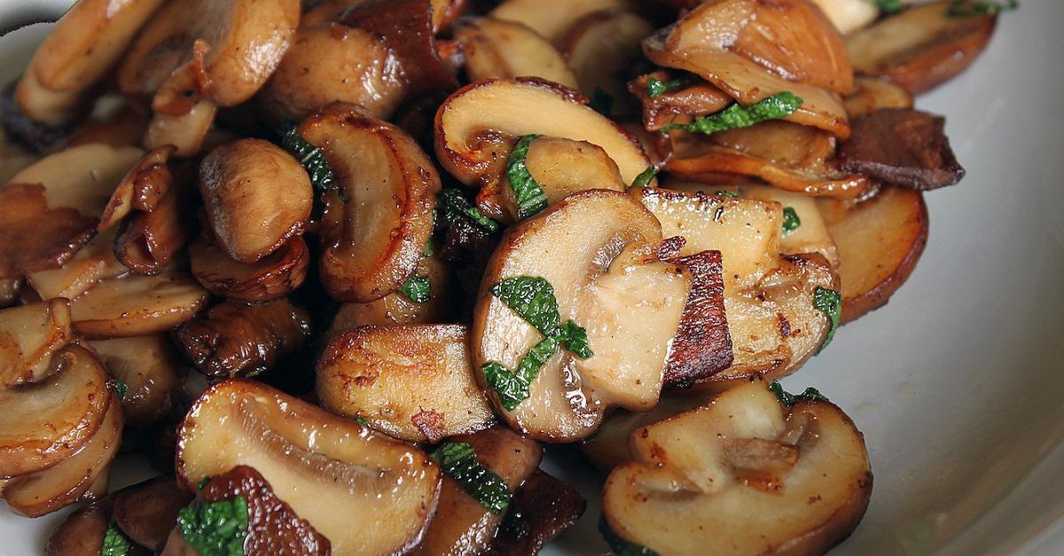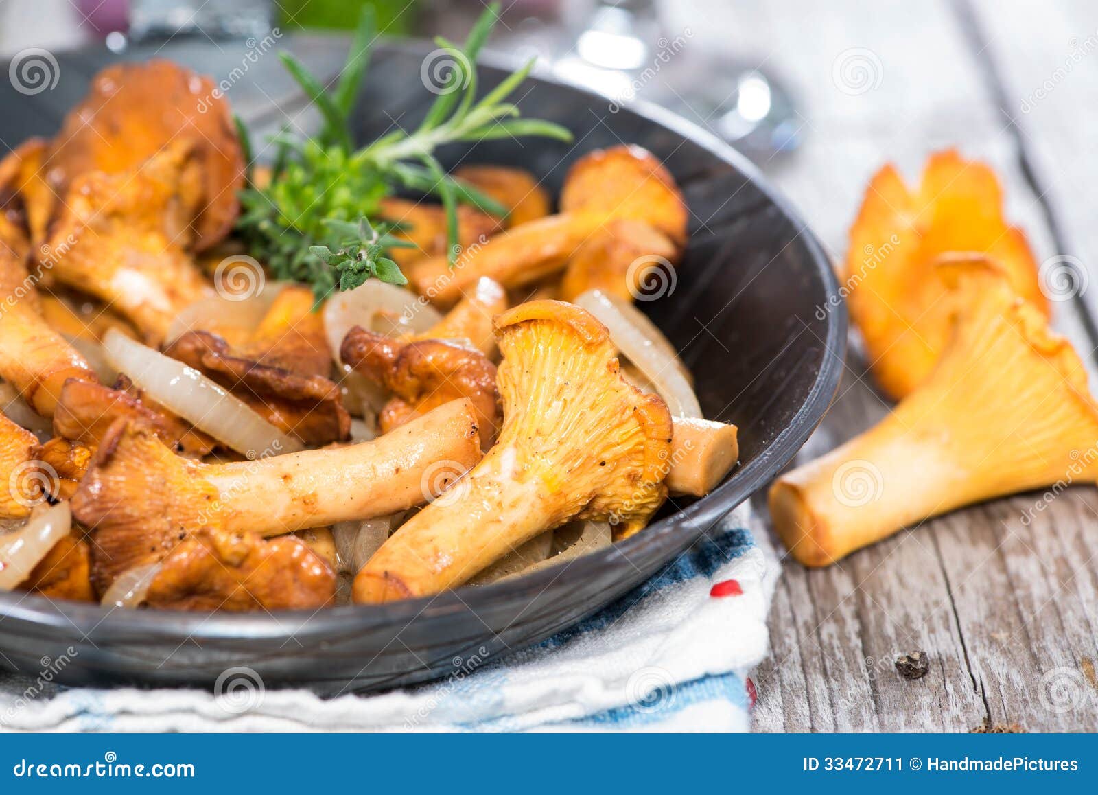 Выключите огонь и подавайте жареные грибы с паве, хлебом или булочками.