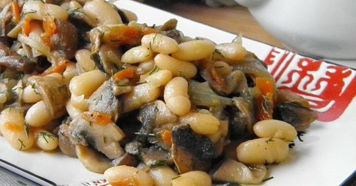 Как приготовить грибной салат с фасолью.