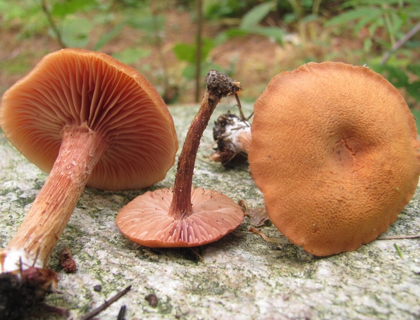 Мякоть с огуречно-мучным пахом.Шляпка округлоколокольчатая, затем стертая, с бугром, красновато-коричневая, рыжеватая .