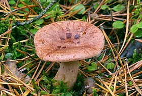 Этот пластинчатый гриб с красно-коричневой шляпкой встречается в хвойных (с сосной) и смешанных лесах (с березой), во влажных местах, на краю болот, во мху.
