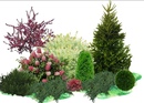 communis ‘Suecia Nana’ (‘Suecia Nana’ можжевельник обыкновенный; M), J.communis ‘Compressa’ (можжевельник обыкновенный ‘Compressa’; M), Picea glauca ‘Pendula’ (ель белая ‘Pendula’; I) и Pinus cembra ‘Glauca’ (сосна швейцарская ‘Glauca’; I).