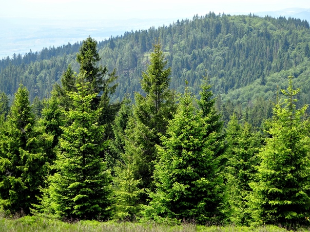 Хвойный лес бывает разнообразным, это и высоченный сосновый бор, и ели со своей яркой зелёной кроной, как причудливые пирамиды стоящие плотным рядом. А хвойный, кедровый лес просто достоин кисти художника, эти могучие деревья как сказочные исполины возвышаются над окружающими просторами.